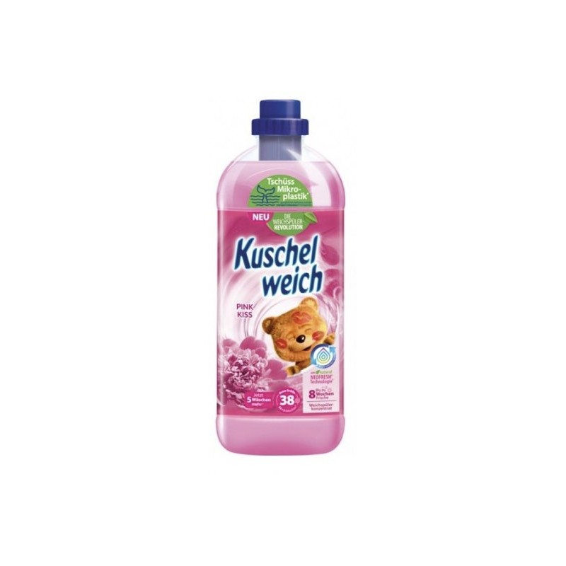 Koncentrovaná aviváž Kuschelweich Pink Kiss zabraňuje žmolkování a většímu mačkání. Prádlo zanechá měkké na dotek a příjemně dlouhodobě provoněné. Lze ji použít i na dětské oblečení. Dermatologicky testováno. Složení je na 38 pracích dávek.