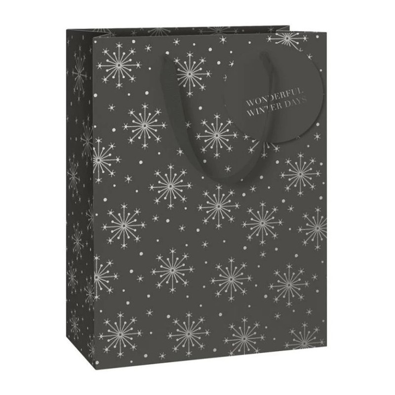 Vánoční dárková taška v elegantním černém odstínu s motivem vloček.