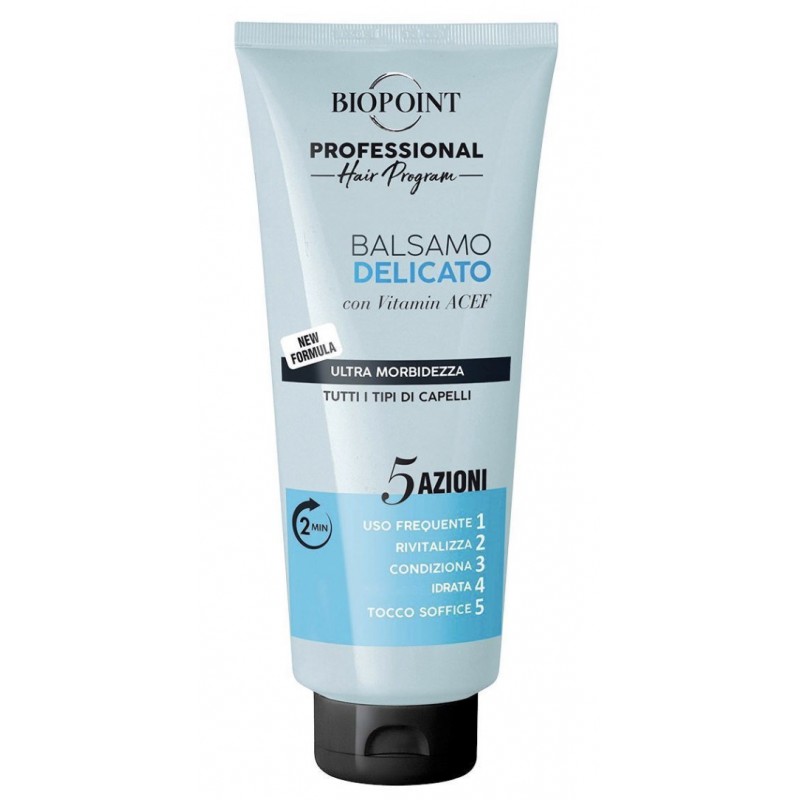 Profesionální balzám Biopoint je určen na všechny typy vlasů, i na ty nejjemnější. Jeho inovativní složení je obohaceno o kombinaci vitamínů, keratin, extrakty s Aloe Vera. Je ideální pro časté mytí, revitalizuje a posiluje vlasové kořínky, změkčuje vlasy a usnadňuje rozčesávání, hydratuje a regeneruje vlasové vlákno, a zvyšuje přirozený lesk vlasů. Dermatologicky testováno.
