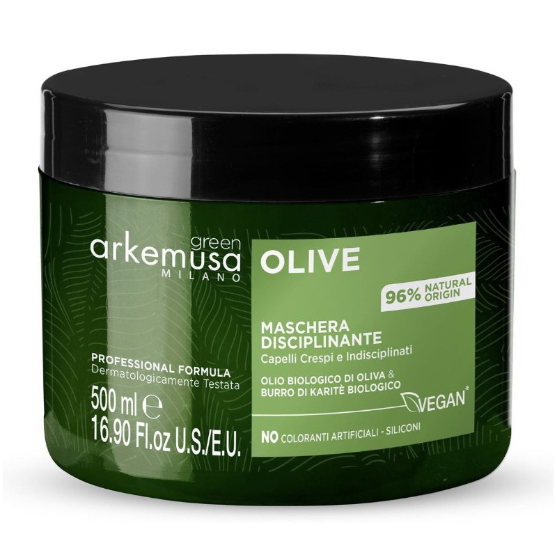 Maska Arkemusa Green je určena pro krepaté a nepoddajné vlasy. Její složení je obohaceno o organický olivový olej a bambucké máslo. Vlasům dodává intenzivní výživu. Zároveň usnadňuje rozčesávání, vlasy vyhlazuje a hydratuje. Neobsahuje silikony a umělé přísady.