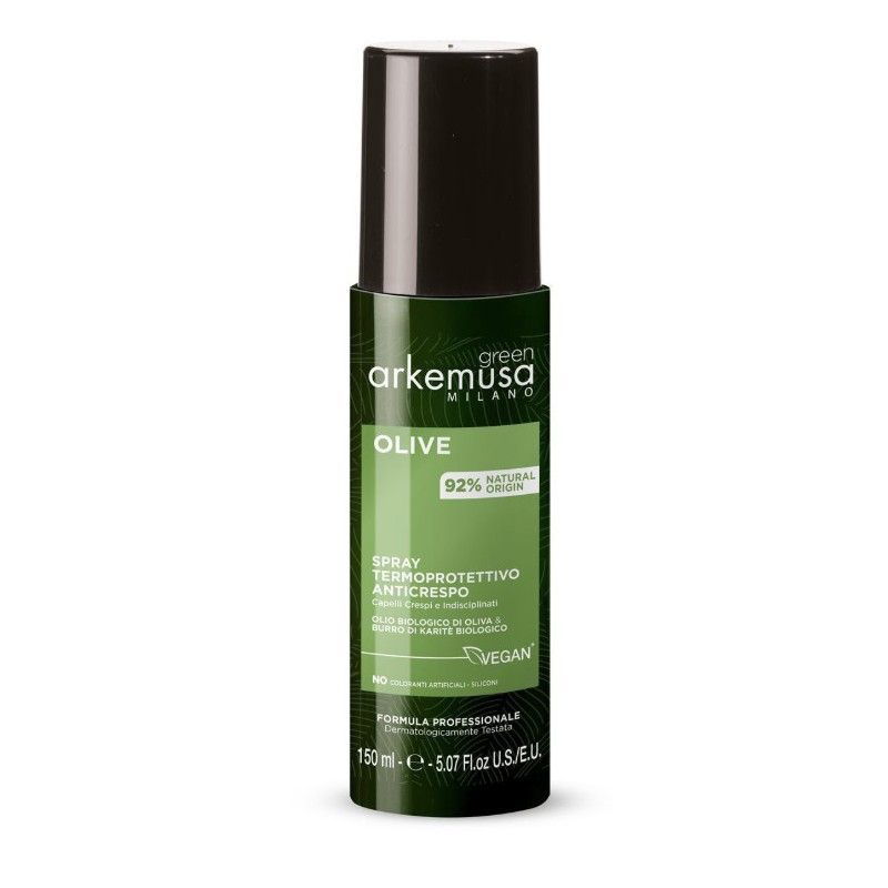Sprejová bezoplachová maska Arkemusa Green pro krepaté a nepoddajné vlasy. Její složení je obohaceno o organický olivový olej a bambucké máslo. Vlasům dodá intenzivní výživu. Termoochrana. Zároveň usnadňuje rozčesávání, vlasy vyhlazuje a hydratuje. Neobsahuje silikony a umělé přísady.