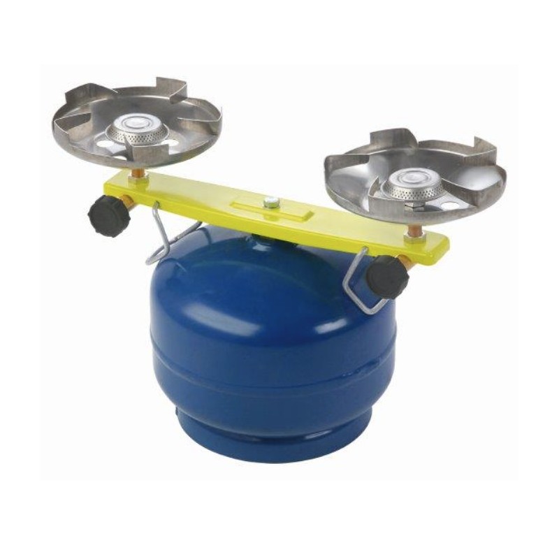 Dvouhořákový vařič na propan-butan pro určen pro turistické účely k přípravě pokrmů.