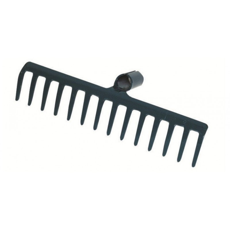 Železní hrábě bez násady k shrabování hrubšího smetí, spadaného listí, uřezaných větví a zarovnávání zeminy.