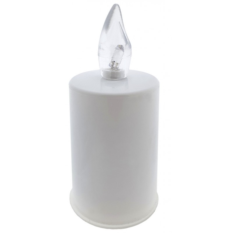 Bílá plastová LED svíčka s bílým (mléčným) plamínkem.
