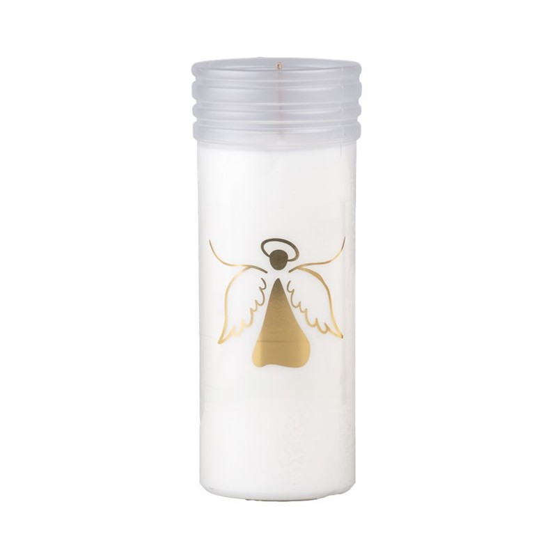 Vkladová svíčka Madona v bílé barvě s motivem zlatého anděla.
