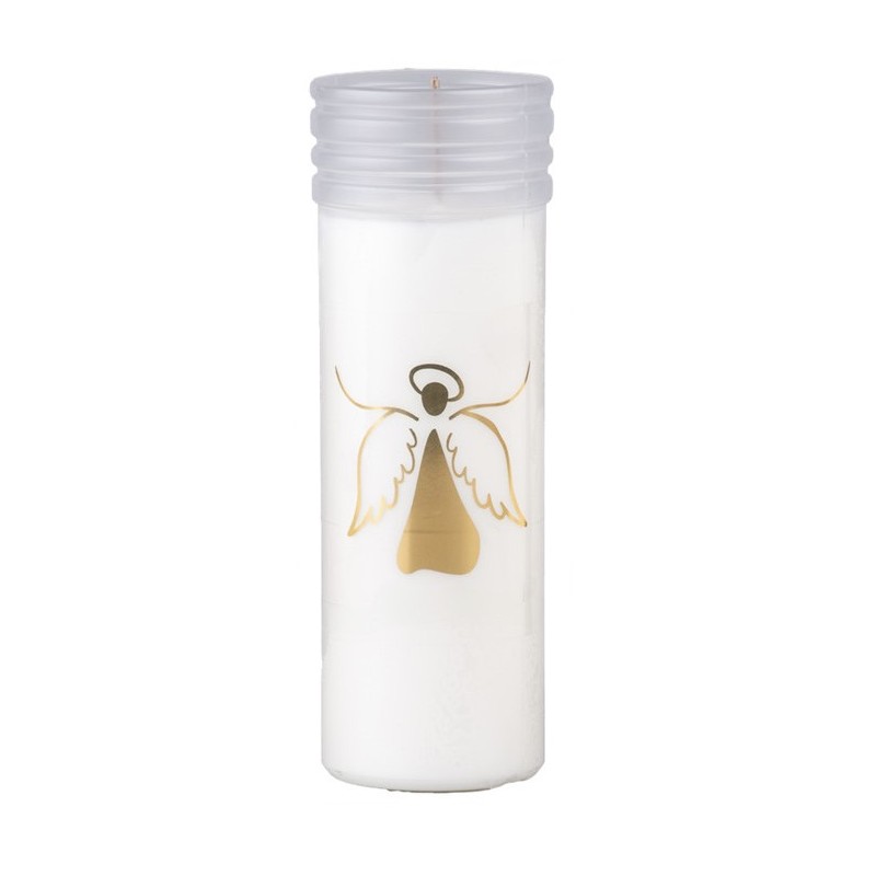Vkladová svíčka Madona v bílé barvě s motivem zlatého anděla.