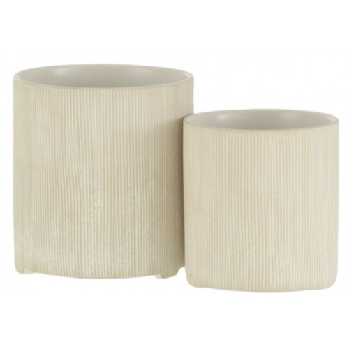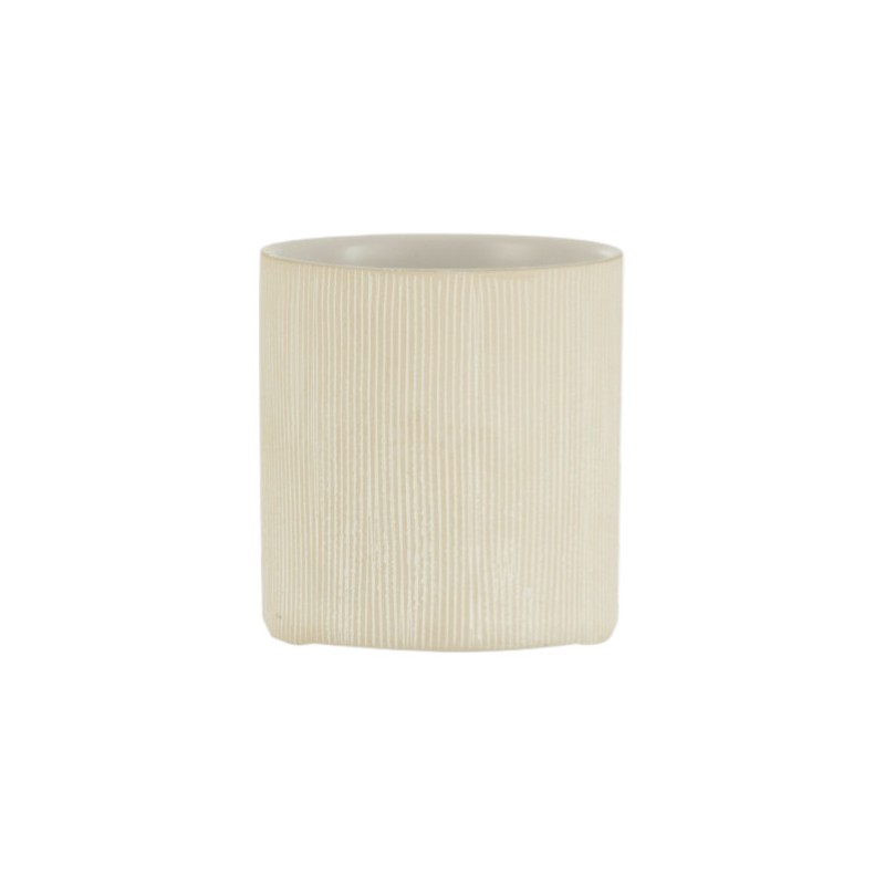 Minimalistický keramický květináč s jemným vertikálním rýhováním.
