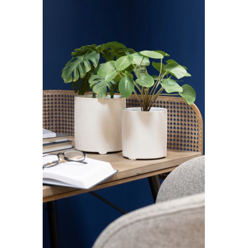 Minimalistický květináč z kvalitní keramiky v bílé barvě zaujme svým jemným vertikálním rýhováním, které dodává eleganci i texturu, Je ideální volbo pro milovníky čistého designu a přírodních materiálů. Skvěle vynikne jak samostatně, tak i s dalšími květináči z kolekce Maria.