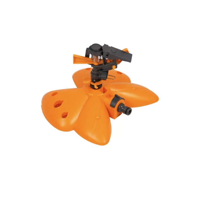 Impulsní zavlažovač je vyroben z kvalitního plastu. Lze nastavit rozptyl proudu, vzdálenost rozstřiku a také požadovaná výseč zavlažované plochy. S připojením na hadicovou rychlospojku.