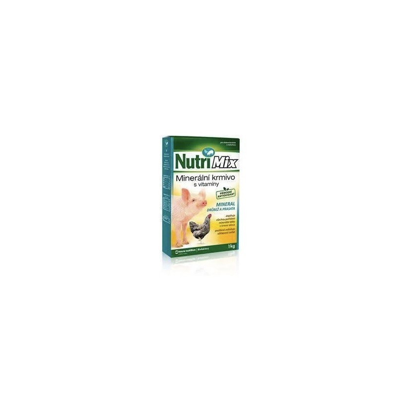 NutriMix Mineral je určen pro prasata a drůbež. Obsahuje všechny potřebné mikro a makroprvky v optimální dávce. Část mikroprvků je ve formě bioplexů. Udržuje dobrý zdravotní stav zvířat a řeší nedostatek minerálních látek a stopových prvků při poruchách minerálního metabolismu, rachitidě, osteomalácii apod. Přípravek je určen i pro drobnochovatele ke každodennímu doplňování hodnotných krmných dávek na bázi obilných šrotů.