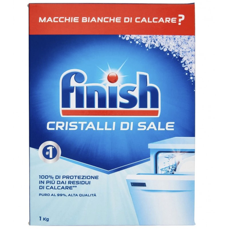 Sůl do myčky Finish se používá především pro úpravu vody v myčce a chrání před usazováním vodního kamene jak v myčce tak i na umytém nádobí. Obsahuje přírodní prvky, má formu velkých granulí a jednoduše se rozpouští. Také zvyšuje mycí efekt. Výrobci myček doporučují používat sůl do myčky vždy i když ji obsahují mycí prostředky.