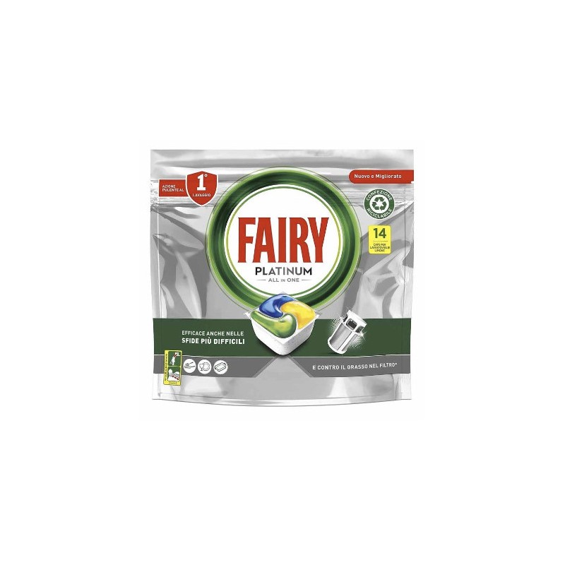 Tablety do myčky Fairy Platinum Lemon v sobě kombinují tekutý i práškový čistící prostředek a poradí si i s těmi nejodolnějšími nečistotami, aby Vaše nádobí zářilo čistotou. Kapsle obsahují prostředek na oplachování, jež Vaše nádobí zanechá brilantně čisté. Zároveň čistí mastnotu z filtru a tak udržuje Vaši myčku čistou a voňavou. Balení obsahuje 14 ks tablet.