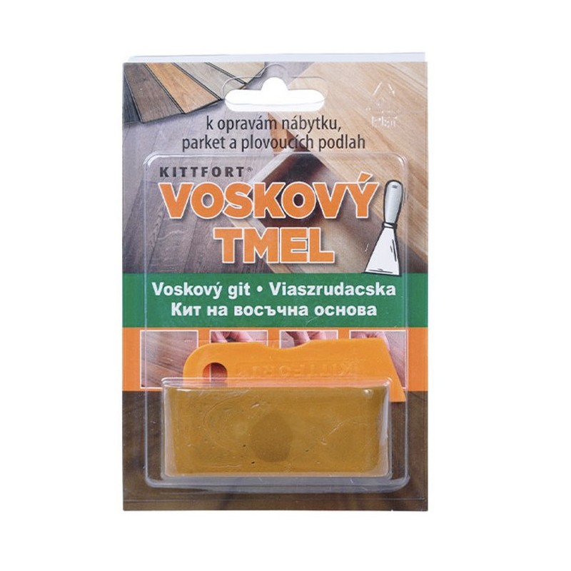 Voskový tmel je určen k opravě a retušování rýh drobných škrábanců v plovoucích podlahách, parketách, mořeném dřevě a leštěném nábytku. PO aplikaci je světlostálý. Pro interiér i exteriér.