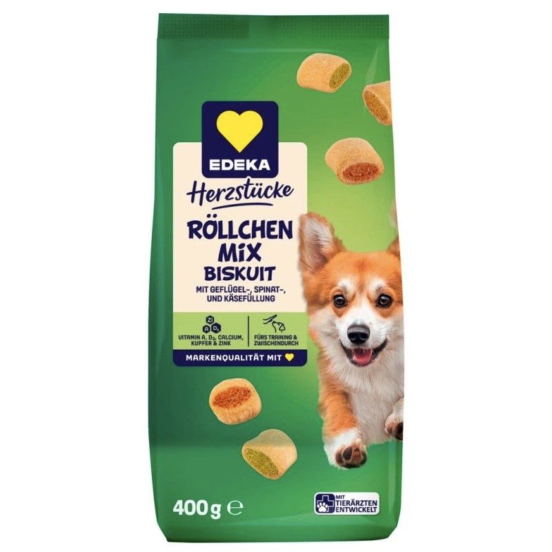 Edeka masové rolky mix s drůbežím masem, špenátem a sýrem jsou vysoce chutný doplněk stravy pro Vašeho psa. Jsou ideální jako lahodná odměna nebo snack během dne.