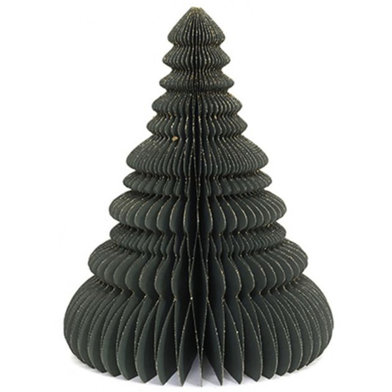 Papírový skládací stromeček v krásné tmavě zelené barvě je dokonalou vánoční dekorací. Okraje jsou zdobeny jemným zlatým třpytem. Díky magnetu je snadné ho složit a poté zpět uložit do krabice.