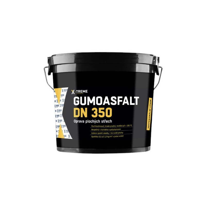 Gumoasfalt DN 350 je disperze asfaltů modifikovaných syntetickým kaučukem k použití na suché a mírně vlhké podklady, Díky tixotropním vlastnostem lze nanášet gumoasfalt na podklad s libovolným sklonem. Nátěr ze svislého povrchu nestéká ani při vysoké teplotě +100 °C. Při nízkých teplotách si zachovává svou elasticitu. Je odolný vůči působení atmosférických vlivů, slabým kyselinám a zásadám a působení agresivních látek obsažených v zemi. Lze jej použít i v bezprostředním kontaktu s polystyrenem, nenarušuje jeho strukturu. Rychle schne - voděodolný už po 12 hodinách. Bez obsahu rozpouštědel.