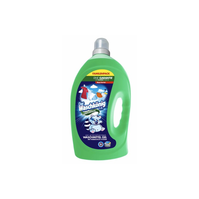 Koncentrovaný prací gel Waschkönig Universal je vhodný na bílé a stálobarevné prádlo. Obsahuje formuli, která odstraňuje nečistoty a skvrny již při nízkých teplotách při zachování barev. Pečuje o barvy tkanin před poškozením a zanechává příjemnou vůni. Gel obsahuje složky, které chrání Vaši pračku před usazováním vodního kamene a korozí. Není vhodný na vlnu a hedvábí. Koncentrované složení je na 100 pracích dávek.
