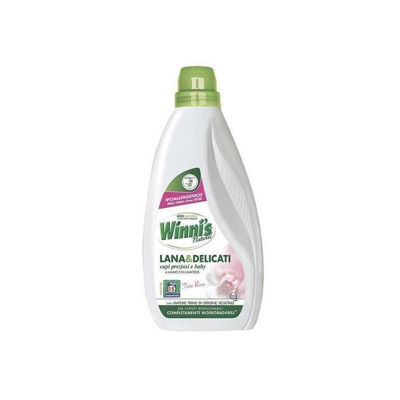 Prací gel Winni’s Lana & Delicati s jemnou parfemací růže je určen na vlnu, jemné prádlo a spodní prádlo. Jeho šetrné hypoalergenní složení nezpůsobuje kožní alergie a podráždění, proto je vhodný i pro praní dětského prádla. Je určen pro praní v pračce i na ruční praní. Neobsahuje fosfáty, barviva, nikl, kobalt a chrom. Všechny složky v receptuře jsou plně veganské. Složení na 15 pracích dávek.