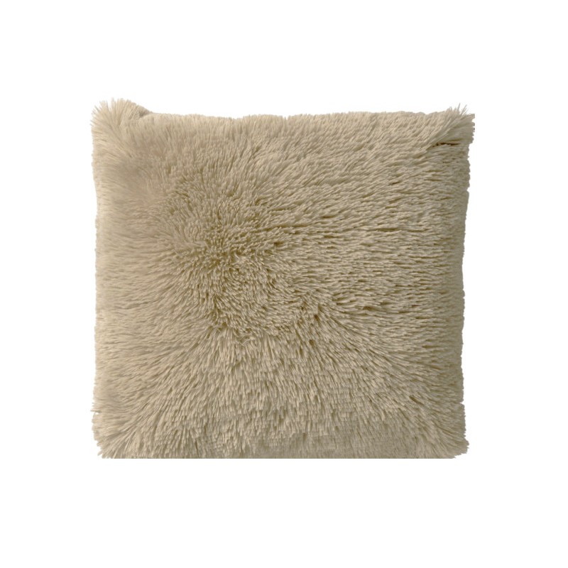Dekorativní polštář s dlouhým vlasem v neutrální béžové barvě pro zútulnění Vašeho interiéru.