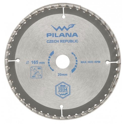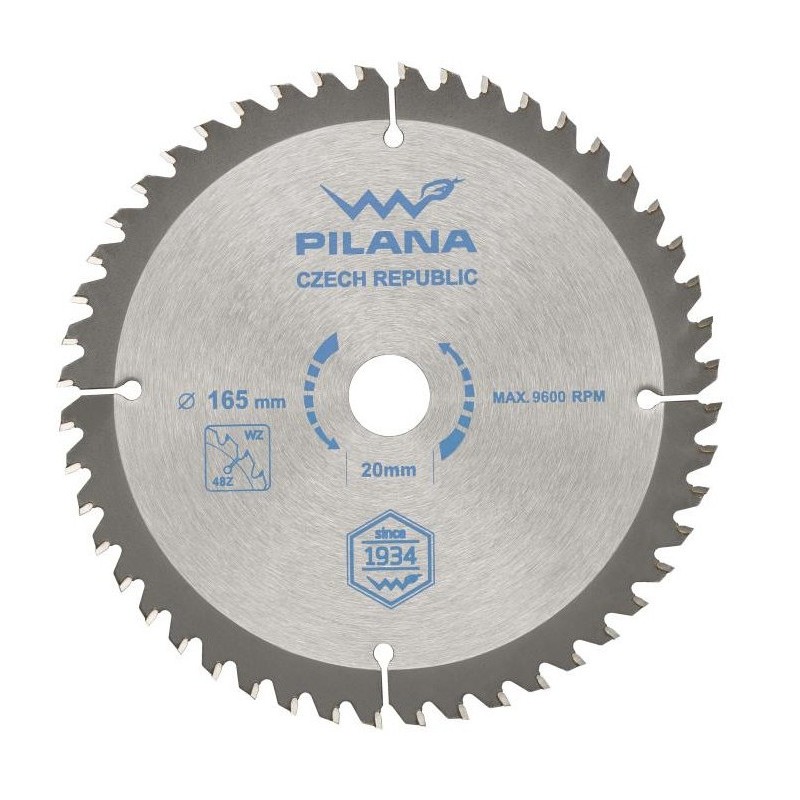 Kvalitní pilový kotouč na dřevo s TCT plátky (slinutý karbid wolframu). Tělo kotouče je vyrobeno z kvalitní uhlíkové oceli (HRC4). Plátky z SK zvyšují životnost kotouče. Zářezy do vnitřní části chrání před přehřátím a deformací kotouče. Kotouč je vhodný na řezání měkkého i tvrdého dřeva, dřevotřískových a tvrdých dřevovláknitých desek a podobných materiálů.