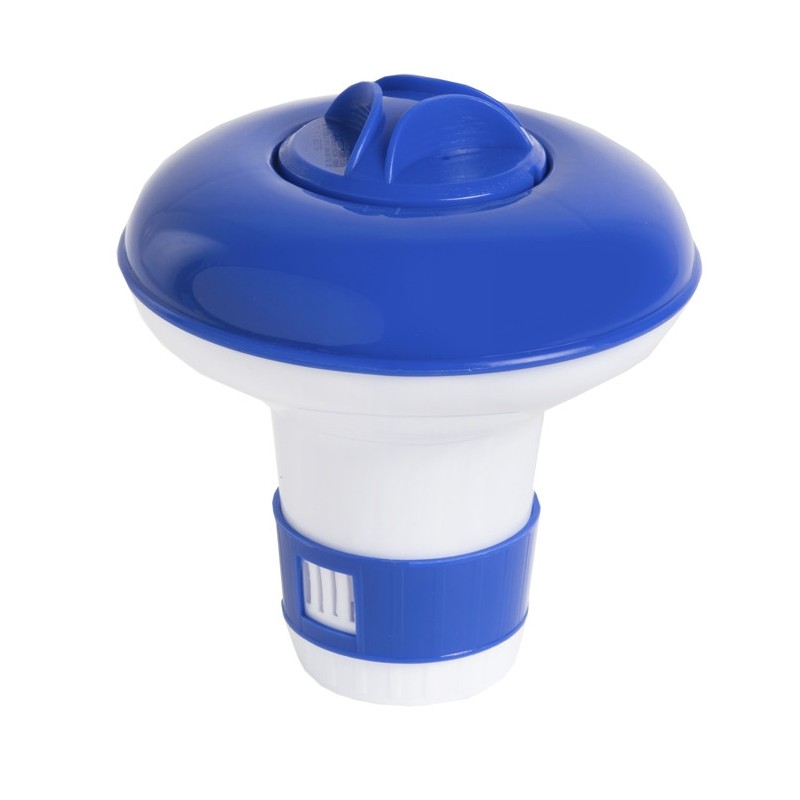 Plovoucí plastový dávkovač s regulační mřížkou pro chlorové 20 g minitablety. Postupným uvolňováním chloru zajišťuje v průběhu sezony stálou dezinfekci bazénu.