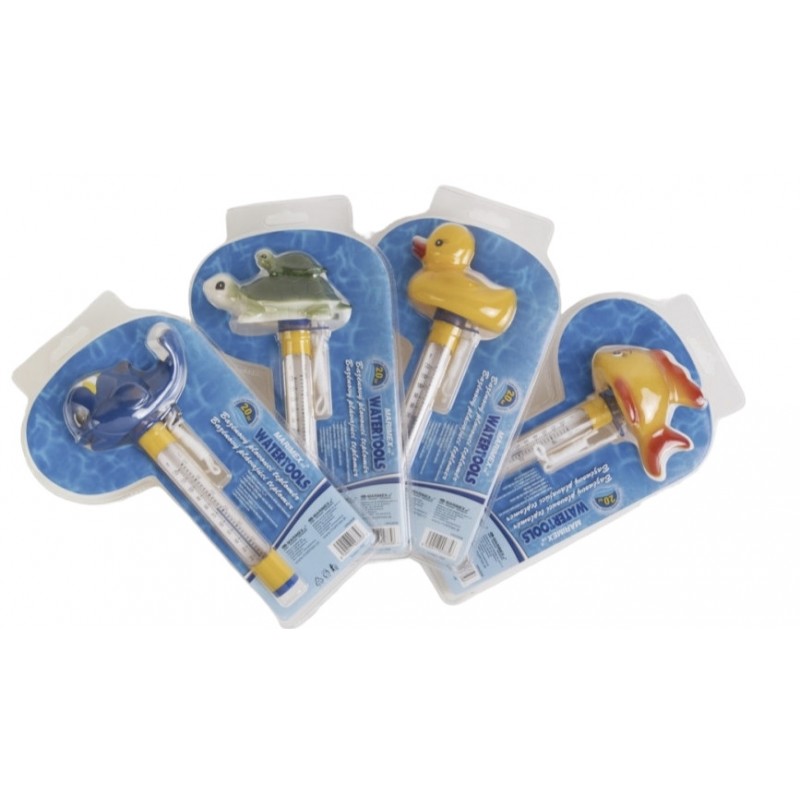 Plovoucí teploměr určený k měření teploty v bazénu. Stupnice je přehledná, v °C a °F.