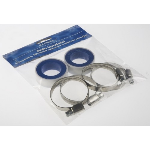 Sada k utěsnění a upevnění hadic u bazénu. Obsahuje 2 x teflonovou pásku pro utěsnění spojů a 4 x hadicovou sponu pro upevnění spojů.