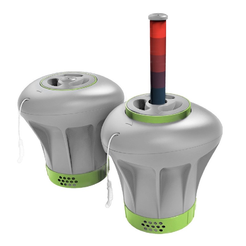 Velký dávkovač chloru má integrovaný barevný ukazatel, který Vás upozorní na potřebu doplnit nové tablety. Indikátor postupně klesá, když se chemikálie rozpustí. Součástí balení je zajišťovací šňůra.