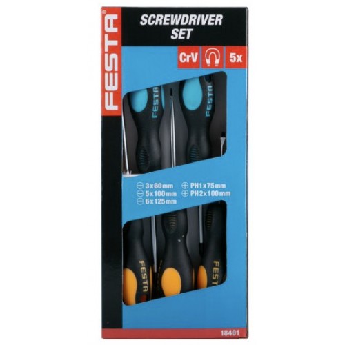 Sada šroubováků S a PH. Dříky jsou z kvalitní CrV oceli s magnetickými hroty. Rukojeti jsou dvoukomponentní ergonomické s barevným rozlišením dle druhu hrotu.