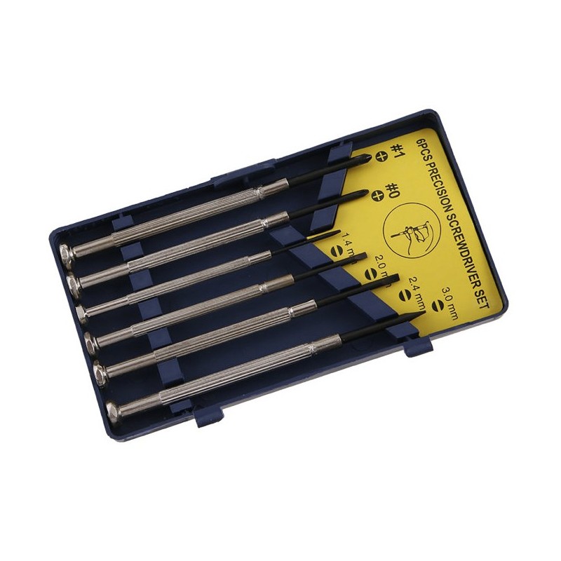 Sada nejpoužívanějších tvarů hrotu a velikostí šroubováků pro jemnou mechaniku a optiku.