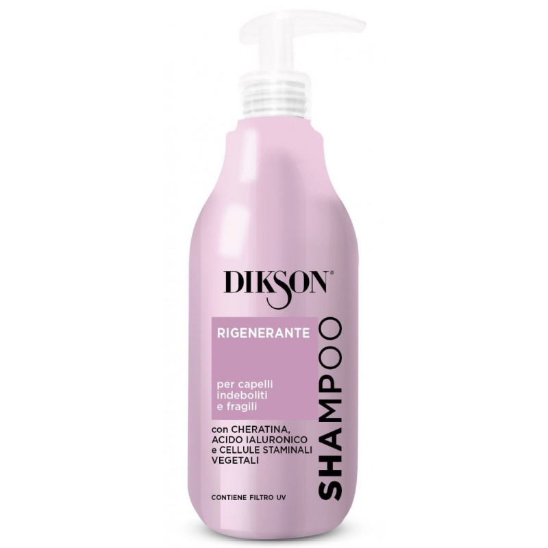 Profesionální šampon Dikson Rigenerante pro oslabené a lámavé vlasy, které potřebují kompletní hloubkovou regeneraci. Obsahuje keratin, kyselinu hyaluronovou a kmenové buňky, jež vlasy intenzivně vyživují a dodávají jim dostatečnou péči. Výsledkem jsou zdravé a lesklé vlasy. Obsahuje UV filtr.