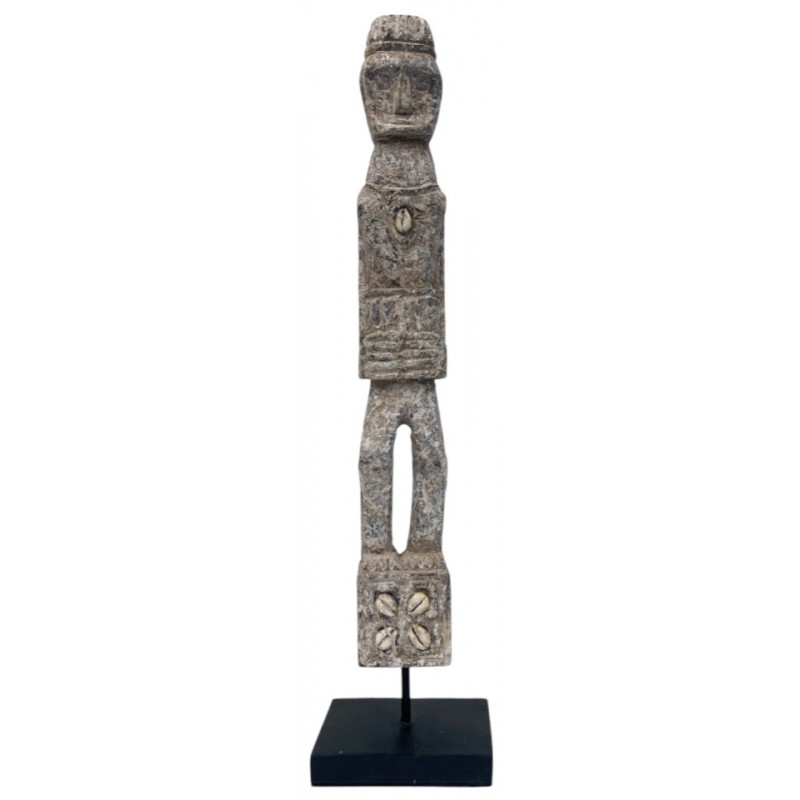 Soška Naya na podstavci inspirovaná tradičními kmenovými motivy vneste do interiéru dotek exotiky. Vysoká štíhlá socha s jednoduchými liniemi zaujme na první pohled. Je umístěna na kovovém podstavci, který zajišťuje stabilitu. Soška se hodí do interiérů v boho, etno, wabi-sabi či rustikálním stylu. Každý kus je originál - odstín a kresba dřeva se mohou lišit. Výběr kusu k dodání je náhodný.