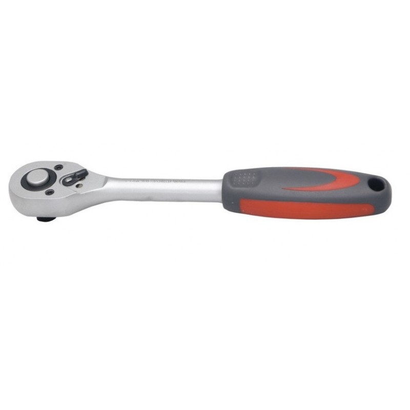 Ráčna z chromvanadiové oceli a ergonomickou plastovou rukojetí.