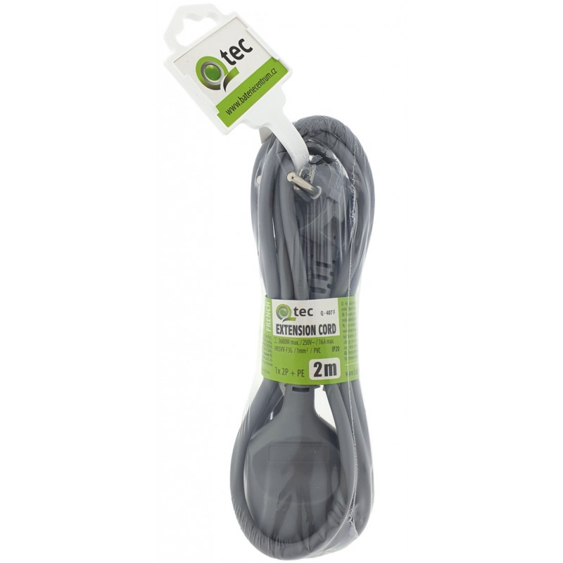 Prodlužovací přívod šedý 1 zásuvka 2 m, Q-407F QTEC