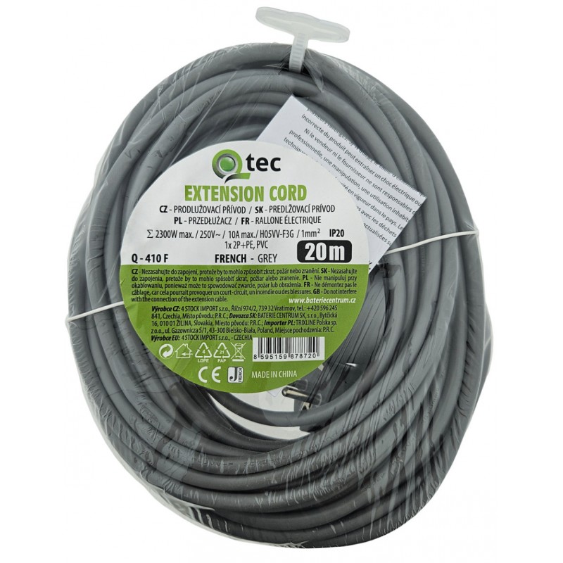 Prodlužovací přívod šedý 1 zásuvka 20 m, Q-410F QTEC