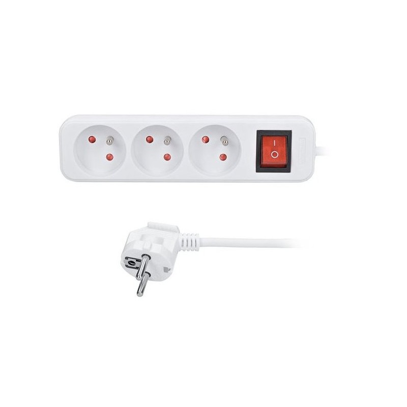 Prodlužovací bílý kabel s délkou 3 m a 3 zásuvkami je ideální pro prodloužení elektrické energie v domácnosti, kanceláři či dílně. Je vhodný pro připojení samostatného zařízení mimo dosah pevné zásuvky.