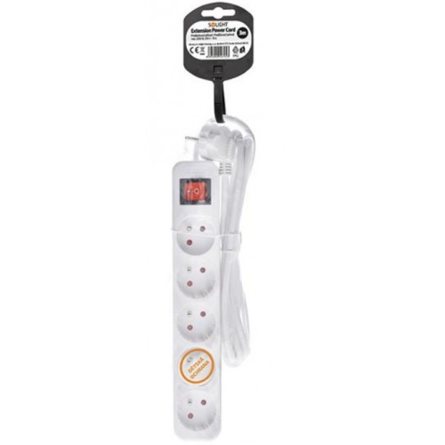 Prodlužovací přívod 5 zásuvek, bílý, vypínač, 3 m Solight