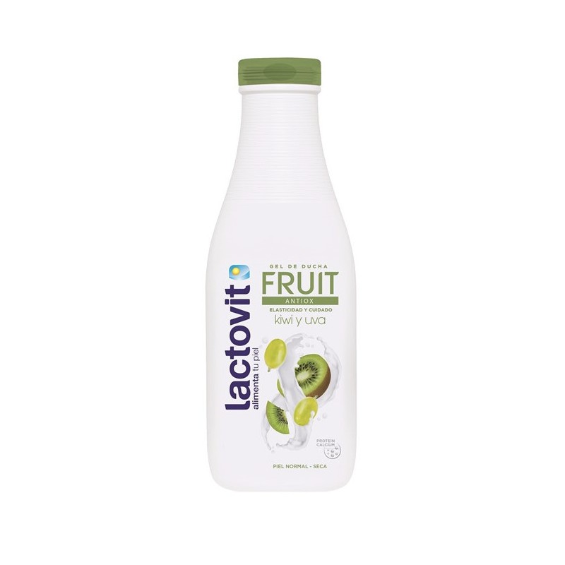 Sprchový gel Lactovit díky výtažkům z kiwi a hroznů, které mají vysoce antioxidační účinky, předchází stárnutí buněk pokožky a dodává pleti pevnost a pružnost. Sprchové gely Lactovit jsou obohaceny o mléčnou složku Protein Calcium, která zajišťuje hloubkové působení složek mléka (vitamíny, proteiny, minerály a lipidy) v pokožce. Vaše pokožka bude jasnější a svěží.