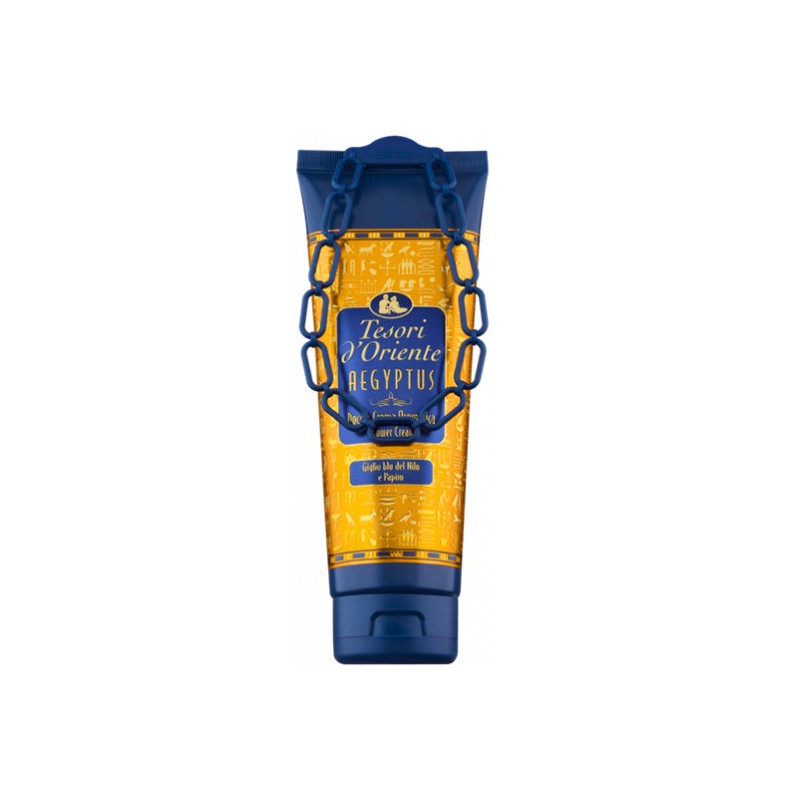 Krémový sprchový gel Tesori d'Oriente Aegyptus je orientálně kořeněná vůně s modrou lilií z Nilu. Sprchový gel je obohacený o extrakt z mléka papyru, který pokožku vyživuje a zanechává ji hladkou a hedvábně jemnou. Esenciální oleje obsažené v kosmetice Tesori d´Oriente revitalizují, osvěžují a navozují příjemný pocit relaxace. Neobsahuje parabeny, silikony, minerální oleje a umělá barviva. Pomáhá udržovat optimální hydratační hladinu pokožky.