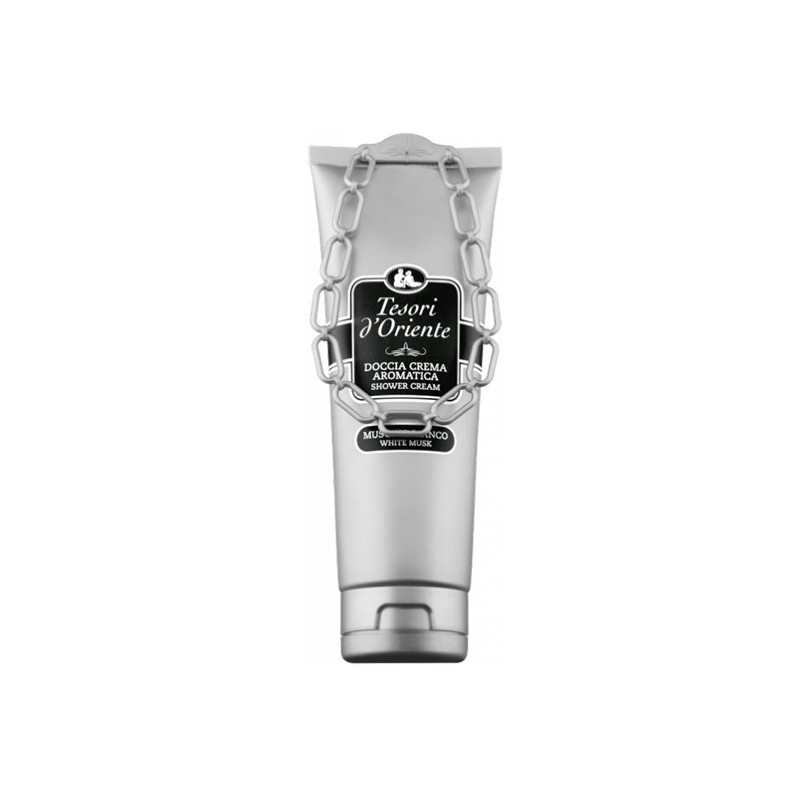 Krémový sprchový gel Tesori d´Oriente Muschio Bianco omámí Vaše smysly intenzivní a dlouhotrvající vůní bílého pižma. Šetrně čistí pokožku jemnou pěnou. Esenciální oleje, obsažené v kosmetice Tesori d´Oriente, revitalizují, osvěžují a navozují příjemný pocit relaxace a pohody. Neobsahuje parabeny, silikony, minerální oleje a umělá barviva. Pomáhá udržovat optimální hydratační hladinu pokožky. Pokožku udržuje jemnou, pružnou a hedvábnou.