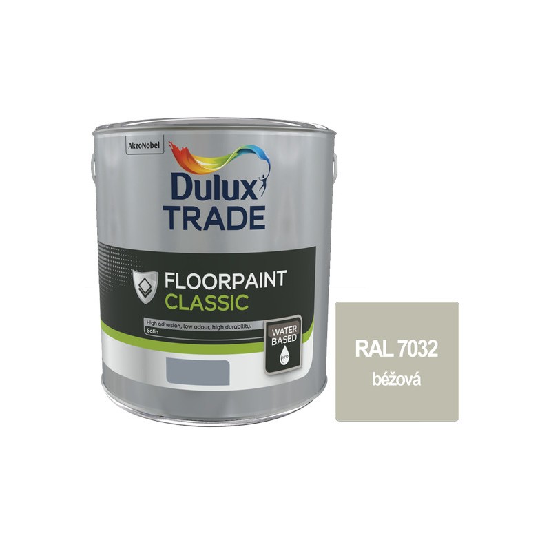 Dulux Floorpaint Classic je vysoce kvalitní jednosložkový nátěr na beton pro použití ve skladech, sklepech, garážích nebo pro všechny jiné pochozí povrchy. Je vhodný i na nátěry obkladů a dlažby. Lze ho použít jak do do interiéru, tak do exteriéru. Nátěr vyniká vysokou odolností proti kapalinám a to i těm provozním (benzín, nafta, motorový olej), ale i roztokům kyselin. Je na vodní bázi. Rychle schne a má minimální zápach při aplikaci.