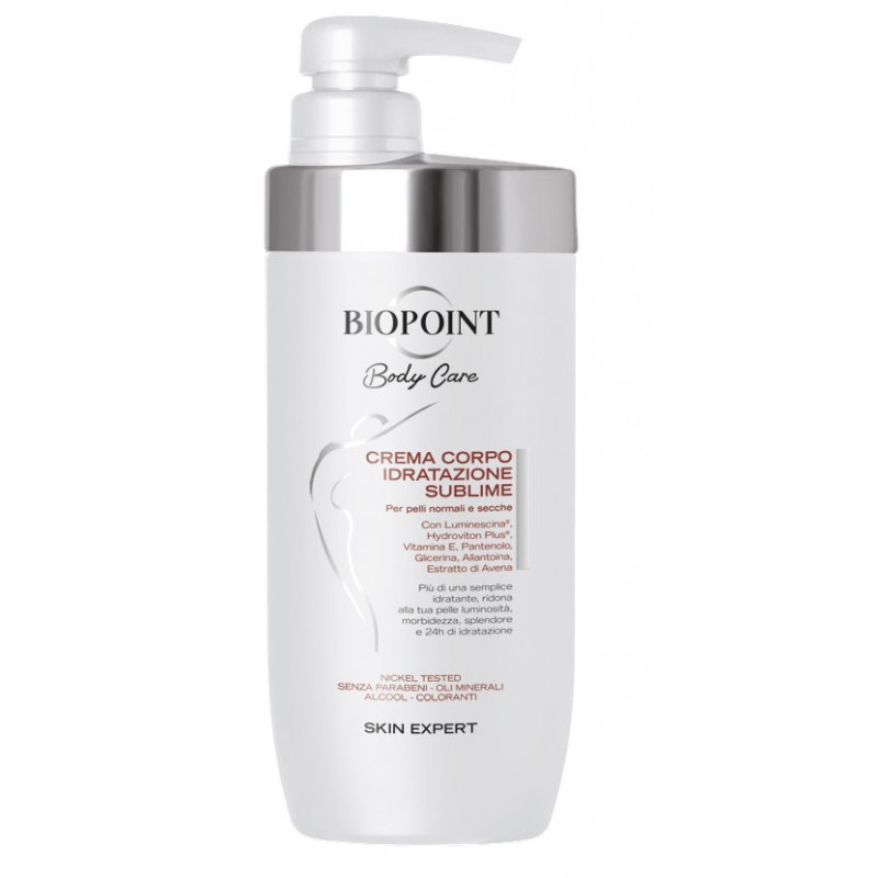 Hydratační tělový krém Biopoint je určen pro suchou až normální pokožku k ranní péči. Efektivně pomáhá obnovit ochrannou kožní bariéru. Hydratační složky jsou uvolňovány v průběhu 24 hodin. Obsahuje širokou škálu výživných látek jako jsou Luminesca, Hydroviton Plus, Glycerin, Panthenol, Vitamin E, Allantoin a ovesný extrakt. Pokožka je rozjasněná, jemná a pružná. Dermatologicky testováno.