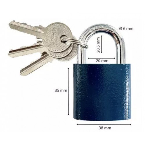 Visací ocelový zámek je vyroben z kvalitní tvrzené oceli. Ocelové tělo zámku s vnitřní zinkovou úpravou zvyšuje odolnost proti korozi. Vložka je mosazná. Oblouk z tvrzené oceli zajišťuje větší odolnost proti prořezání. Součástí jsou 3 ks klíčů.