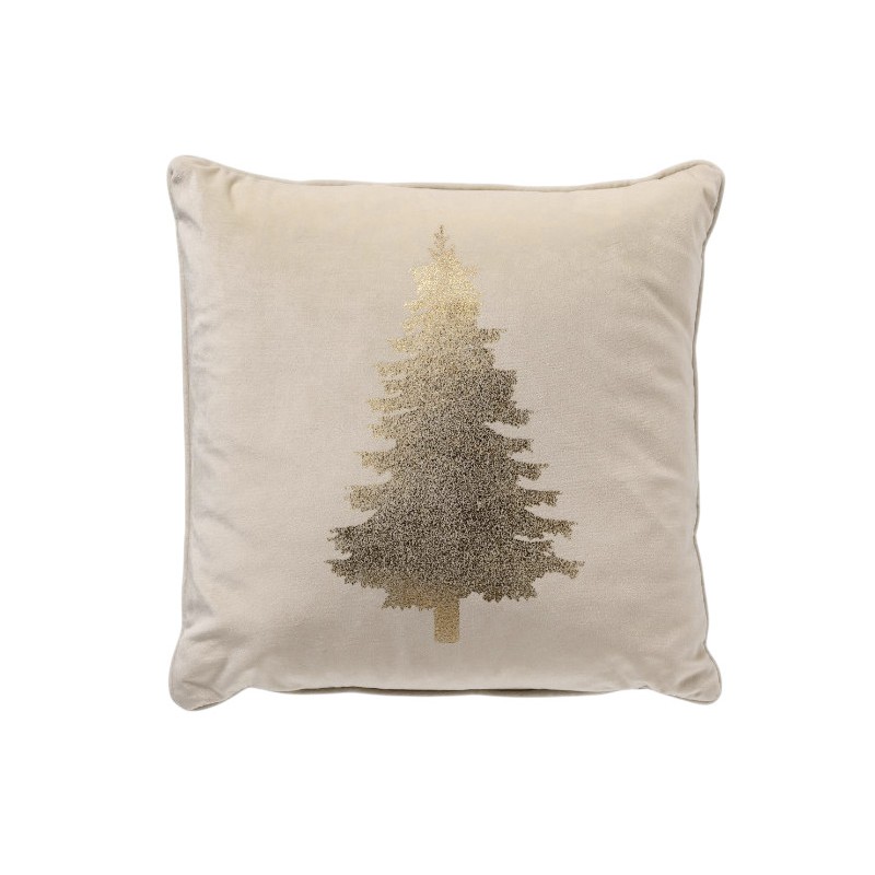 Dekorativní vánoční polštář vnese do Vašeho interiéru slavnostní nádech. Je vyroben z jemného sametu v odstínu Whisper White - teplé bílé, který působí luxusně a zároveň je příjemný na dotek. Přední stranu zdobí zlatý stromeček. Je ideální na pohovku, křeslo či postel během vánočních svátků. Tento polštář je perfektní kombinací komfortu, stylu a vánoční atmosféry.