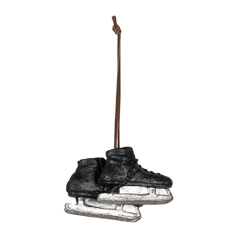 Stylová vánoční ozdoba ve tvaru bruslí z odolného polyresinu v sofistikované černé barvě. Jemný design se hodí na zavěšení na stromeček a dodá vánočnímu aranžmá stylový zimní nádech.
