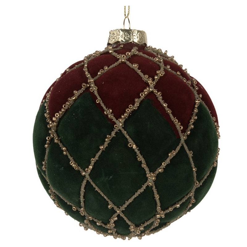 Krásně zpracovaná skleněná ozdoba v červeno-zeleném odstínu se sametovým povrchem. Zdobena je korálky, které ozdobě dodávají slavnostní charakter. Tradiční sváteční motiv, který vnese do interiéru hravou eleganci.