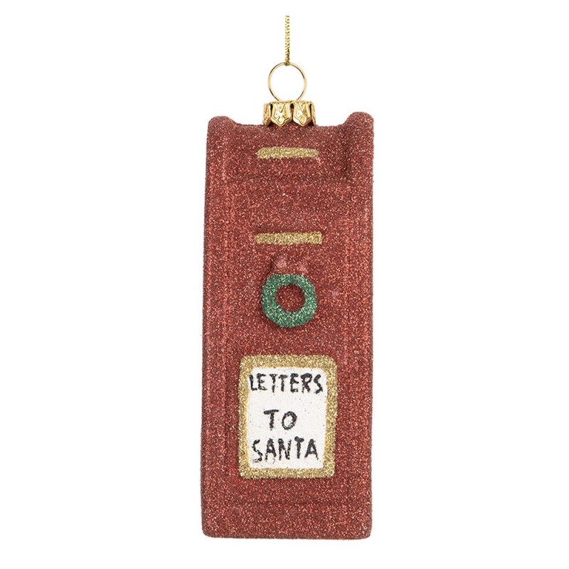 Roztomilá vánoční ozdoba ve tvaru poštovní schránky s jemným třpytem.