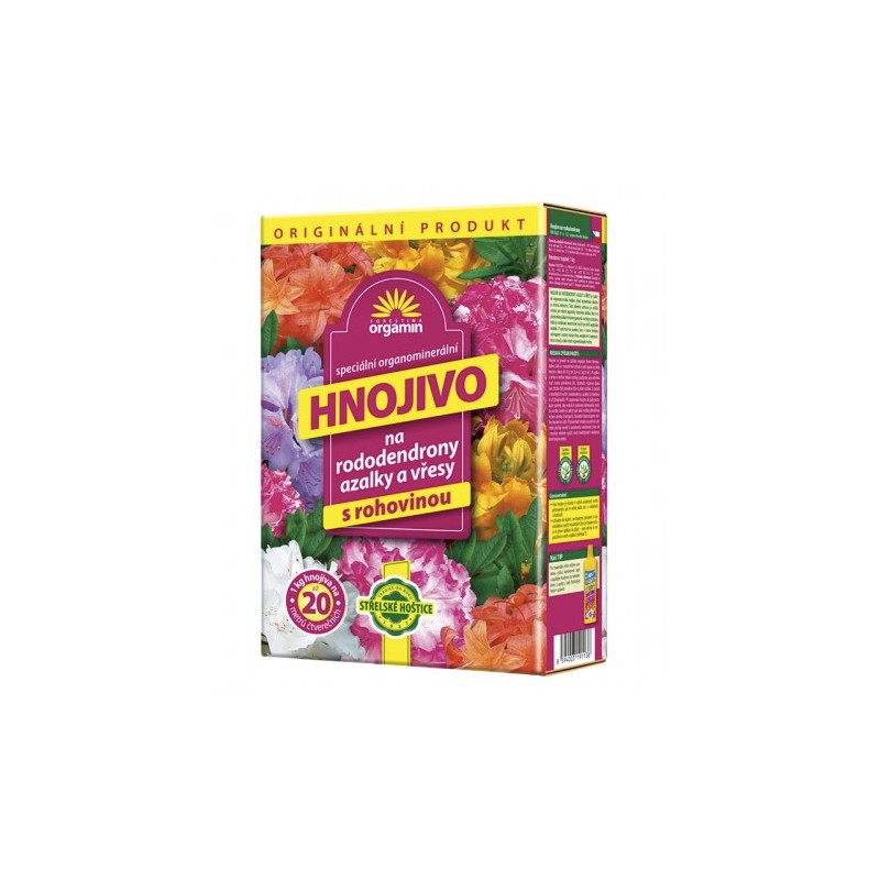 Hnojivo Orgamin na rododendrony, azalky a vřesy je speciální granulované biominerální hnojivo s kvalitní mletou rohovinou, které působí jako bohatý, harmonicky vyvážený zdroj všech živin od začátku vegetace až do pozdních období. Zesiluje biologickou činnost půdy, zlepšuje půdní strukturu a dýchání kořenů, zvyšuje odolnost proti houbovým chorobám a reguluje vodní režim rostlin. Hnojení se provádí na začátku vegetačního období, kdy se stejnoměrně rozhodí a poté zapraví do půdy hnojivo v dávce 40 až 70 g na 1 m2.