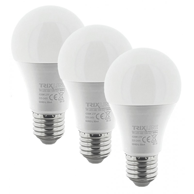 LED žárovka 10W A60 E27 neutrální bílá 3 pack, Trixline